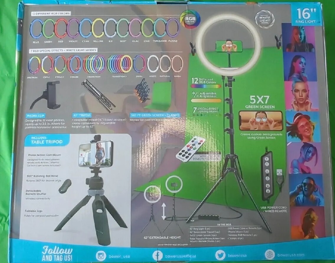 Bower Content Creator Kit 16 Inch Rgb Ring Light 62 Inch Tripod Green Screen Ebay